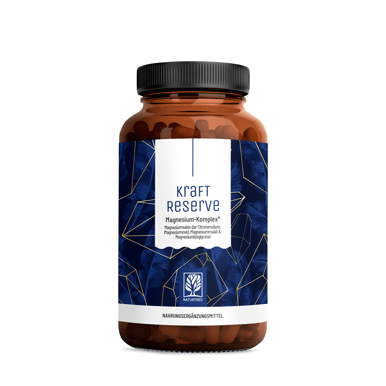 Der Magnesium Komplex “Kraft Reserve” von NATURTREU belegt den zweiten Platz unseres Vergleichs. NaturTreu setzt auf einen sauberen Mix der gängigsten Magnesiumverbindungen und produziert auch in Deutschland. Leider enthält der Komplex weniger als ein Drittel des hoch-bioverfügbaren Magnesiumcitrat. Dennoch weist das Produkt ein gutes Preis-Leistungs-Verhältnis auf und belegt einen guten zweiten Platz.