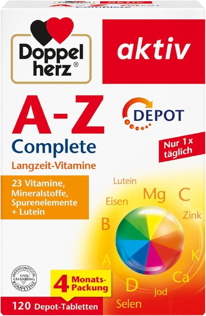 Die bekannte Drogeriemarke Doppelherz konnte mit dem “A bis Z Complete” Präparat leider nicht punkten. Obwohl die Tabletten im Vergleich sehr günstig sind und die tägliche Verzehrmenge von nur einer Tablette sehr verbraucherfreundlich ist, kann das Präparat qualitativ leider nicht mithalten. Es sind zwar alle essentiellen Vitamine und einige Mineralstoffe in ausreichender Konzentration enthalten, jedoch überwiegend in minderwertiger Qualität. Viele der gewählten Verbindungen sind nur schwer vom Körper aufzunehmen oder zu verwenden (z.B. Vitamin K1 statt K2). Zudem enthält die Formulierung eine Vielzahl an unnötigen Zusatzstoffen, wie Trennmittel, Farbstoffe oder Feuchthaltemittel. Auch die qualitative Überprüfung durch unabhängige Labore wird nicht erwähnt, sodass wir insgesamt nicht überzeugt sind und hier klar zu anderen Produkten raten.