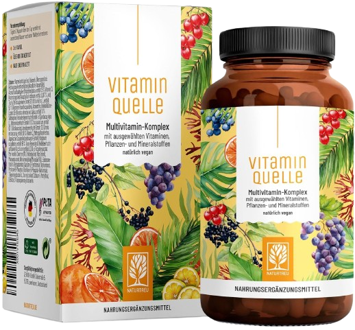 Die “Vitaminquelle” von NATURTREU stellt im Grunde ein sehr solides Produkt mit hohen Qualitätsansprüchen dar. Die Multivitamin Kapseln enthalten Vitamine und Mineralstoffe in bioaktiver Form, die gut vom Körper aufgenommen und verwertet werden können. Zudem runden einige wertvolle Pflanzenextrakte die Wirkstoffliste ab. Jedoch fehlen die essentiellen Vitamine D und K in dem Präparat, welches daher nicht die Ansprüche an ein Multivitamin Präparat erfüllt. Andere Wirkstoffe sind nur unzulänglich dosiert (z.B. Vitamin B12 und Magnesium). Bei dem relativ hohen Preis pro Tag hätten wir uns eine ausgewogenere Formulierung gewünscht.