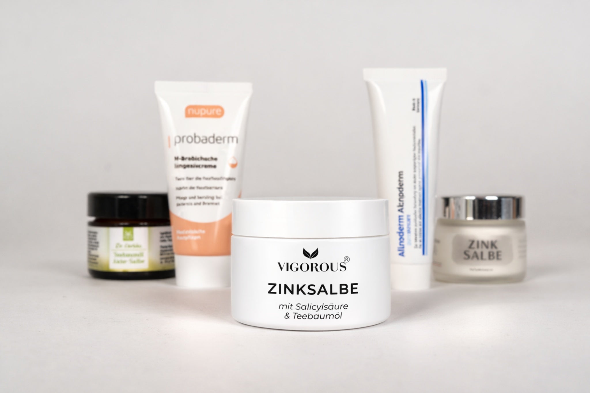 Die Zinksalbe (mit Salicylsäure & Teebaumöl) von VIGOROUS geht aus dem Produktvergleich als klarer Testsieger hervor. Die Salbe gegen Akne und Pickel überzeugt mit dem besten Preis-Leistungsverhältnis, dem Verzicht auf unnötige Zusatzstoffe, einer deutschen Produktion und sehr zielgerichteten Inhaltsstoffen gegen Akne und Pickel. Vor dem Hintergrund aller Qualitätsmerkmale schneidet das Präparat mit Abstand am besten ab.