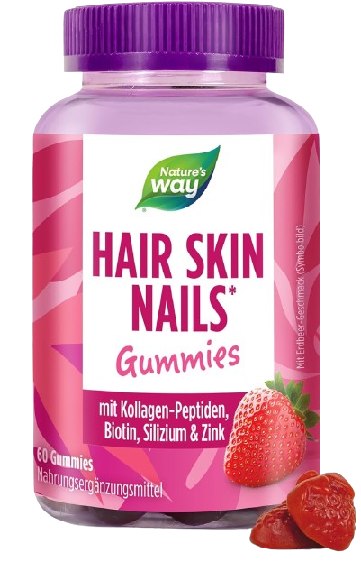 Die "Hair Skin & Nails Gummies" von NATURE'S WAY schneiden in unserem Vergleich am schlechtesten ab und belegen somit den fünften Platz. Sie enthalten nur 1.250μg Biotin / Gummie, sehr wenig Zink und gar kein Selen. Dazu kommt, dass Zucker an vorderster Stelle der sehr langen Zutantenliste steht.