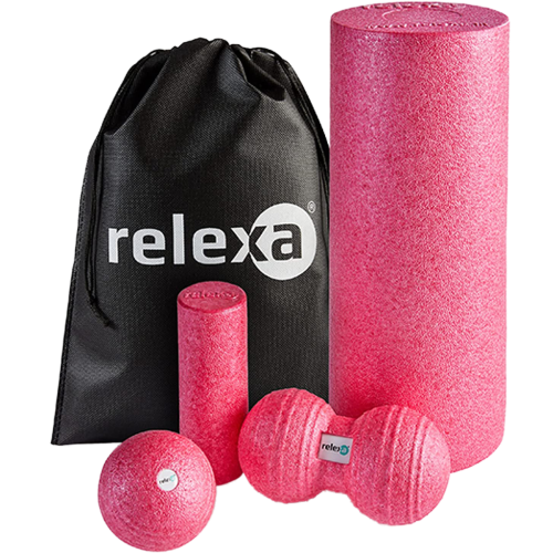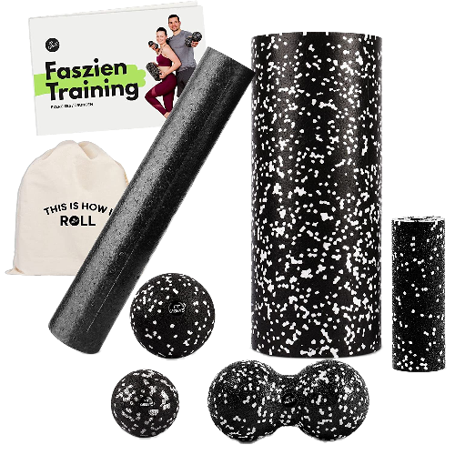 Es besteht aus einer Medi-Faszienrolle und einer Mini-Faszienrolle, einer Medi-Faszienkugel und einer Mini-Faszienkugel sowie einem Stoff-Rucksack zum Verstauen: