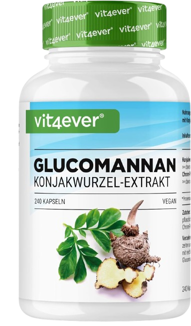 Die Glucomannan Kapseln von vit4ever belegen den zweiten Platz in unserem Vergleich. Die Kapseln haben ein gutes Preis-Leistungs-Verhältnis, welches zum Großteil auf dem sehr günstigen Preis pro Gramm Glucomannan basiert. In Sachen Qualitätskriterien kommt es leider nicht an unseren Testsieger heran. Das Präparat enthält zwar einen hochwertigen Extrakt der Konjakwurzel, welcher mit Chrompicolinat angereichert ist und auf den Einsatz etwaiger Zusatzstoffe verzichtet.