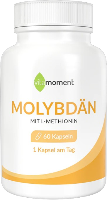 Das Molybdän von Vitamoment enthält neben einer recht hohen Menge von 200 µg Molybdän pro Tagesdosis auch noch die essentielle Aminosäure L-Methionin. Dieser Zusatz kann sinnvoll sein, da sowohl Molybdän, als auch Methionin am Aminosäurestoffwechsel, also dem Auf- und Abbau von Proteinen im Körper, beteiligt sind. Die Produktion der Vitamoment Produkte findet in Deutschland statt und zeichnet sich zusätzlich durch hohe interne Qualitätsstandards aus. Obwohl regelmäßige Laboranalysen beworben werden, sind jedoch leider keine Analysenzertifikate einsehbar. Die internen Qualitätsstandards und hochdosierten Inhaltsstoffe scheinen für den hohen Preis verantwortlich zu sein, was das Produkt leider nicht konkurrenzfähig macht. Wer jedoch nach einem hochdosierten Molybdän Präparat mit L-Methionin als Zusatz sucht, kann hier ein sehr solides Produkt bekommen.