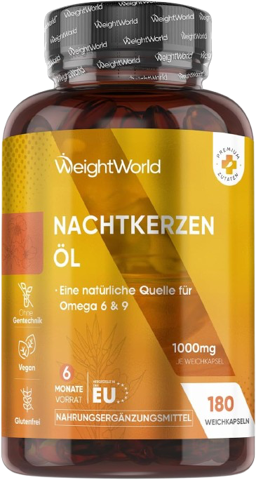 Dier Nachtkerzenöl Kapseln von WeightWorld belegt in unserem Vergleich den ersten Platz. Überzeugen konnten die klare Rezeptur nach dem Clean-Label-Prinzip ohne unnötige Zusatzstoffe, das beste Preis-Leistungs-Verhältnis und die Verwendung pflanzlicher Kapseln. Positiv ist auch der standardisierte Rohstoff, der für gleichbleibende Qualität spricht. Wünschenswert wäre, dass der Hersteller je Charge ein aktuelles Analysenzertifikat veröffentlicht, inklusive Prüfungen auf Reinheit, Keimbelastung und die genaue Wirkstoffangabe wie den Anteil an Gamma Linolensäure.
