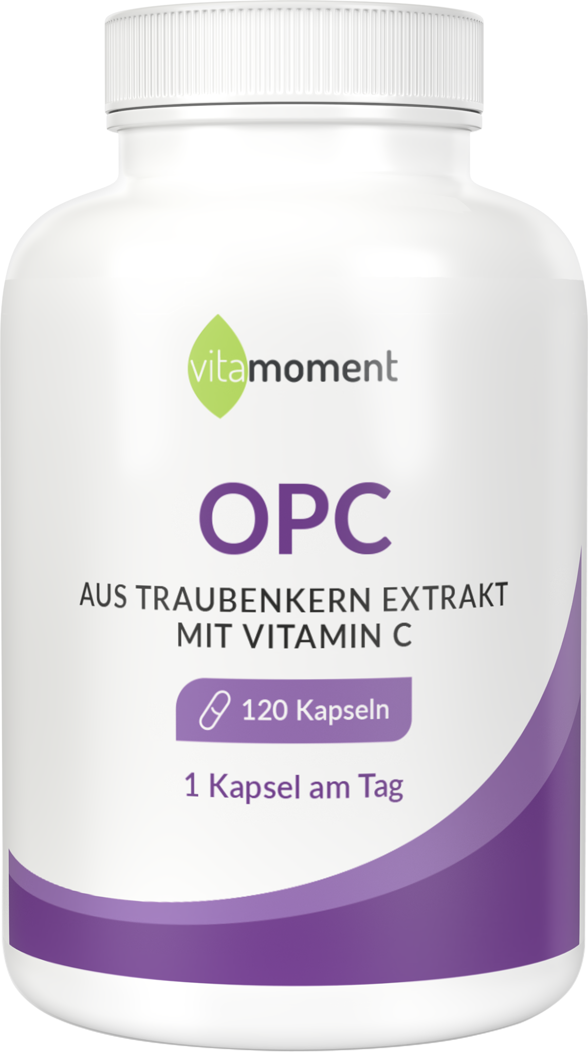 Oligomere Proanthocyanidine (OPCs) sind natürliche Stoffe, die hauptsächlich in Traubenkernen und Blaubeeren vorkommen. Sie sind bekannt für ihre starken antioxidativen Eigenschaften, die dem Körper helfen, schädliche Moleküle, sogenannte freie Radikale, zu neutralisieren. Freie Radikale fallen zum einen bei normalen Stoffwechselprozessen im Körper an, können aber auch durch Umweltfaktoren wie Luftverschmutzung oder UV-Strahlung entstehen und in unserem Körper zu Zellschäden führen. Studien in Zellkulturen, Tieren und Menschen haben bereits zahlreiche gesundheitliche Vorteile für die Einnahme von OPC (z.B. in Form von Traubenkernextrakt) belegt: