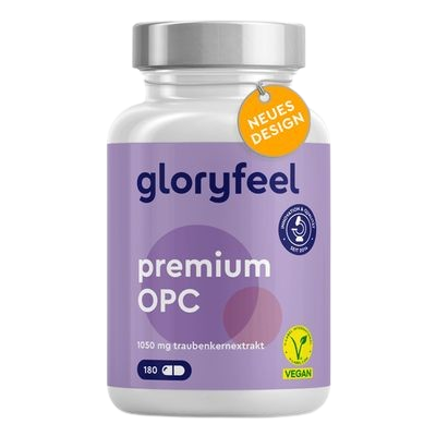 Der Premium OPC Traubenkernextrakt von gloryfeel belegt den dritten Platz in unserem Vergleich. Das Präparat überzeugt mit einer recht hohen Dosis von 315mg OPC pro Kapsel. Leider veröffentlicht der Hersteller keine unabhängigen Laboranalysen und ist recht unspezifisch zum genutzten Extraktionsverfahren. Hierdurch bleiben leider sehr wichtige Fragen zur Qualität, Reinheit und Herstellung unbeantwortet.