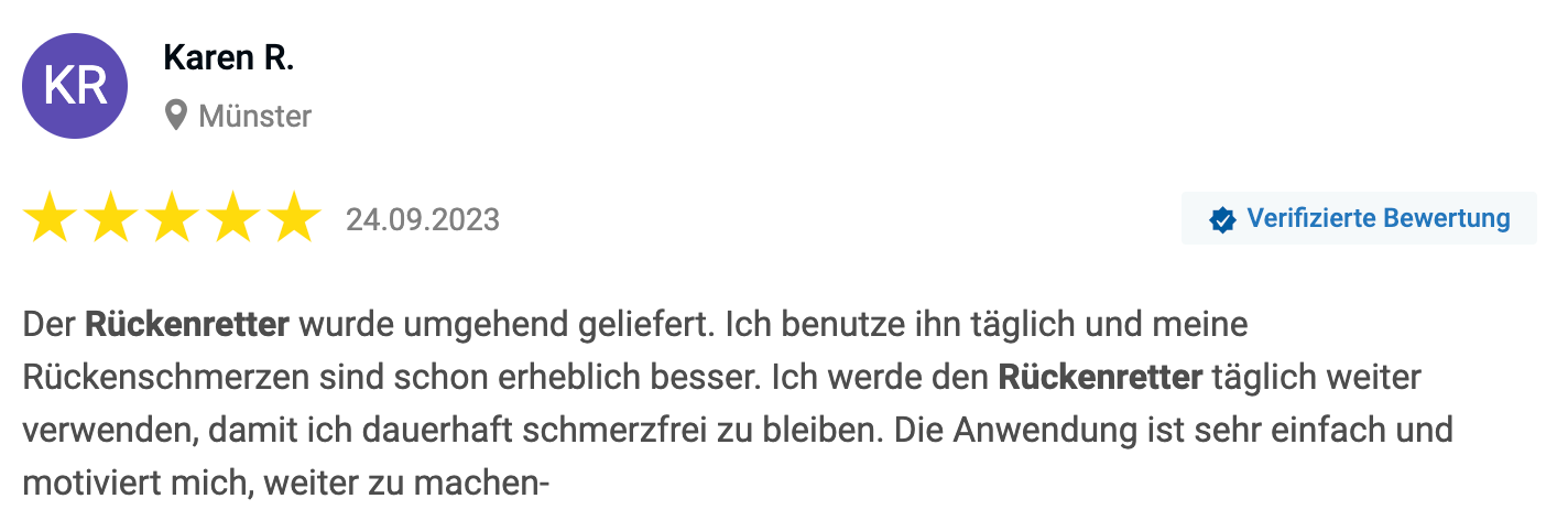 - Spezifische Qualitätsmerkmale: In welchem Umfang konnte das Produkt die o.g. spezifischen Qualitätsmerkmale der Rückenstrecker erfüllen?