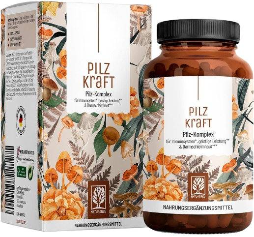 NATURTREU kombiniert im "Pilz Kraft" Präparat vier hochwirksame Vitalpilz-Extrakte, die 485 mg Polysaccharide pro Tagesdosis liefern. Das Produkt ist frei von Füllstoffen und enthält transparente Laboranalysen, was für hohe Produktsicherheit spricht. Besonders lobenswert ist die sorgfältige Kommunikation der Inhaltsstoffe. Leider kombiniert das Produkt nur eine begrenzte Anzahl an Pilzarten und kann auch preislich nicht mithalten. Wer jedoch Wert auf geprüfte Qualität, gute Dosierung und transparente Herstellung legt, findet hier ein sehr solides Produkt.