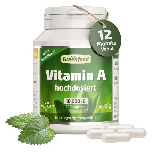 Die Vitamin A Kapseln von Greenfood gehen aus dem Produktvergleich als klarer Testsieger hervor. Das Präparat liefert eine verlässliche Tagesdosis Retinylacetat in veganen HPMC Kapseln, die in Österreich nach strengen EU-Richtlinien produziert werden. Zusätzlich überzeugt Greenfood durch präzise Deklaration, saubere Formulierung und höchste Transparenz.