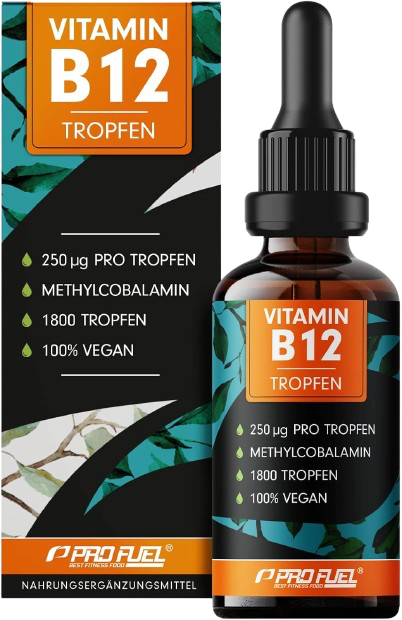 Die Vitamin B12 Tropfen von ProFuel erreichen in unserem Vergleich den vierten Platz. Positiv sind die Herstellung in Deutschland und einsehbare Analysenzertifikate. Pluspunkte sind die vegane, alkoholfreie Rezeptur und die kurze Zutatenliste. Kritisch bewerten wir, dass nur eine aktive B12-Form enthalten ist. Außerdem kritisieren einige Kundinnen und Kunden den süßen Geschmack.