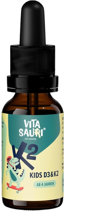 Ein weiterer wichtiger Aspekt bei der Vitamin D Supplementierung ist der Zusatz von Vitamin K2 , da dieses in Synergie mit Vitamin D3 wirkt und die beiden Vitamine so für den Transport und Einbau von Calcium in die Knochen verantwortlich sind. Dies ist besonders für Kinder im Wachstum von großer Bedeutung.
