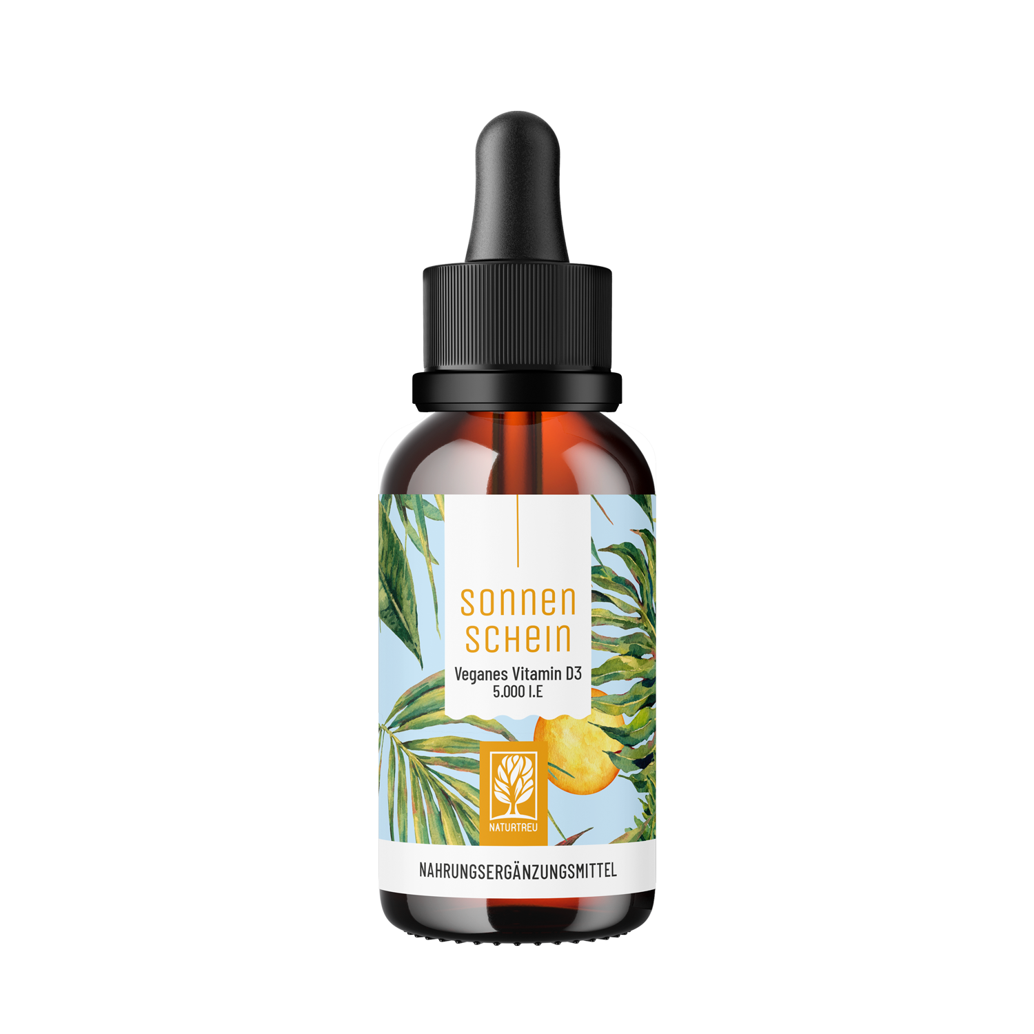 Das "SONNENSCHEIN" Vitamin D3 von NATURTREU punktet mit einer guten Dosierung und einem fairen Preis-Leistungs-Verhältnis. Allerdings hat das Produkt keinen öffentlichen Laborbericht. Es belegt in unserem Test den dritten Platz.